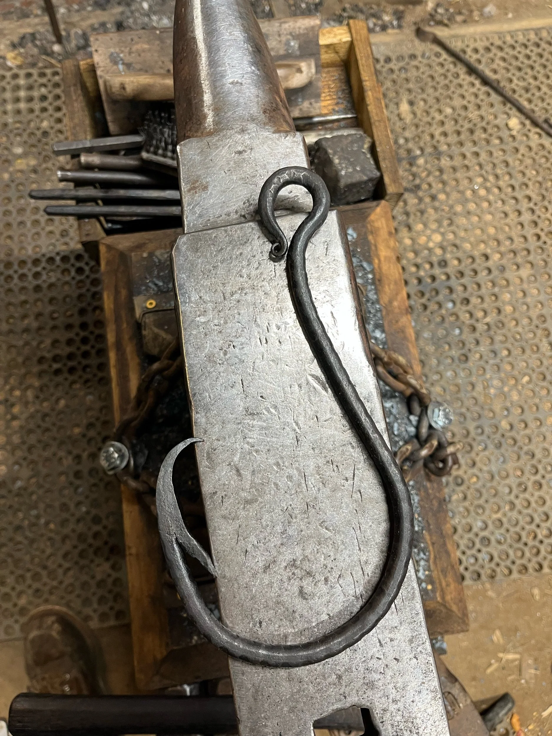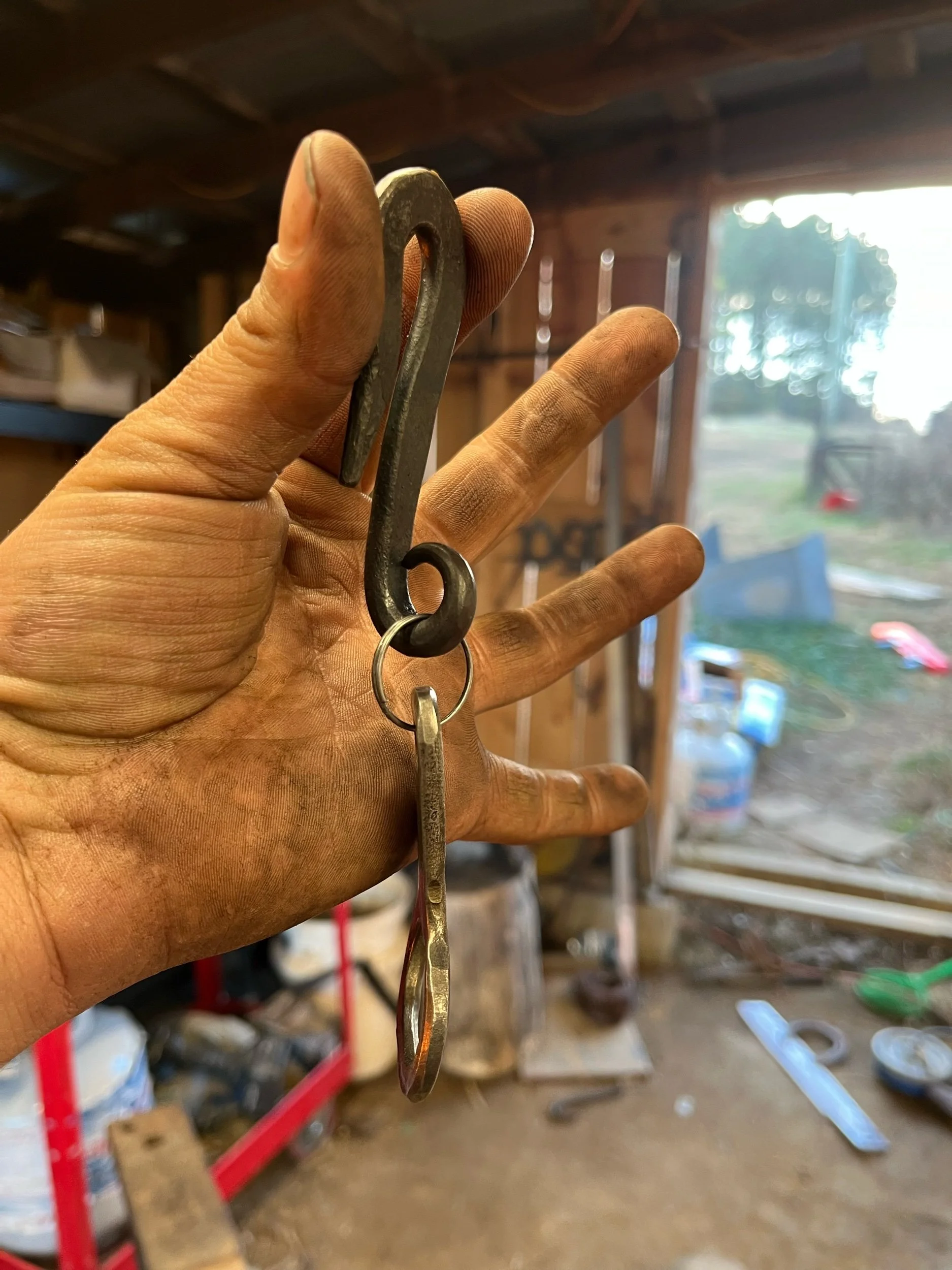 Shop Categories: All Historic Reproductions Household Items Tools Utensils All | Historic Reproductions | Household Items | Tools | Utensils | Key ring clip $12.00 Ice sickle ornament $10.00 Large hair pin $35.00 Dinner bell $25.00 Steak turner $60.00 Large forged fish hook $25.00 Hair Pin (regular) $30.00 Coat/Skillet Rack $160.00 Wall mount paper towel holder $40.00 Bottle opener $20.00 Spatula with Bottle Opener End $50.00